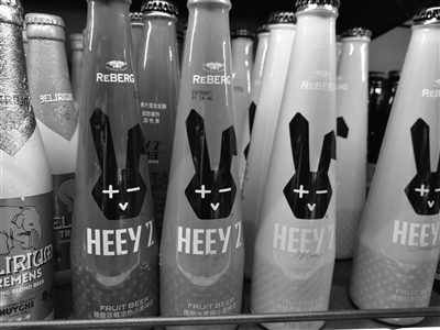 在貨架上,記者觀察到不僅有常見的經典口味啤酒、純生啤酒,還出現了香蕉啤酒、芒果啤酒、玫瑰紅啤酒等不同味道的啤酒。“果味啤酒賣得挺好的,有些顧客喜歡試各種口味的啤酒,而且買果味酒的顧客中,女性也會多一點,一般買啤酒的還是男士居多。”東城匯一家超市的老板告訴記者,老顧客會認品牌,但是新顧客更容易被口味新奇的啤酒吸引。而且果味啤酒度數低,像飲料,也更容易被不喝酒的人接受。