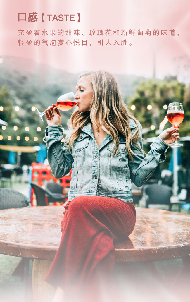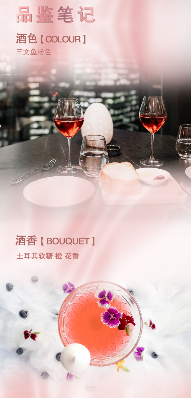 品鑒筆記:充盈著水果的甜味、玫瑰花和新鮮葡萄的味道,輕盈的氣泡讓人賞心悅目。