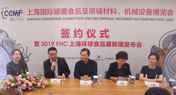 2019年9月27日,中國罐頭工業(yè)協會和上海博華國際展覽有限公司聯合舉辦了2020上海國際罐藏食品及原輔料、機械設備博覽會(CCMF)簽約儀式及新聞發(fā)布會,同時也進行了2019FHC上海環(huán)球食品展的發(fā)布。