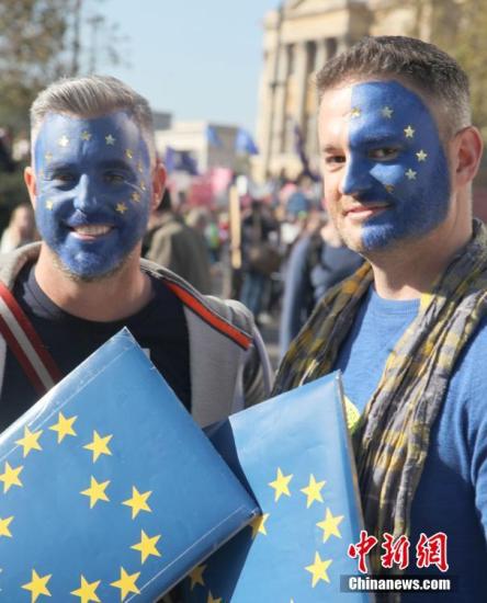資料圖:當(dāng)?shù)貢r(shí)間2018年10月20日,67萬(wàn)英國(guó)民眾匯集在倫敦議會(huì)廣場(chǎng)舉行示威游行活動(dòng),呼吁對(duì)英國(guó)脫歐最終協(xié)議舉行全民投票。
