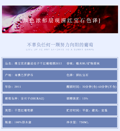 澳寶花老藤設(shè)拉子干紅葡萄酒