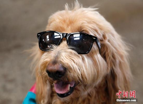 資料圖:一只寵物狗戴上墨鏡“扮酷”。中新社記者 劉關(guān)關(guān) 攝