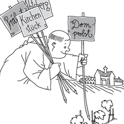修道院的建立,對于葡萄種植具有非常重要的意義。修士們開墾了很多的葡萄園,許多葡萄園的名稱至今還能令人想起這些葡萄園曾經(jīng)屬于教會(huì),如:普瑞拉特(Pr?lat)、教會(huì)地(Kirchenstück)、主教教堂登查內(nèi)(Domdechaney)、阿伯茨貝格(Abtsberg)、主教教堂普若布斯特(Domprobst)等等。