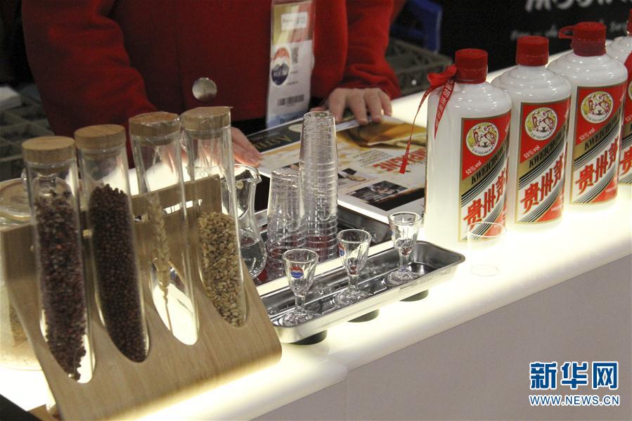 這是2月12日在法國巴黎國際葡萄酒及烈酒博覽會(huì)上拍攝的貴州茅臺(tái)酒展臺(tái)。 新華社記者 徐永春 攝