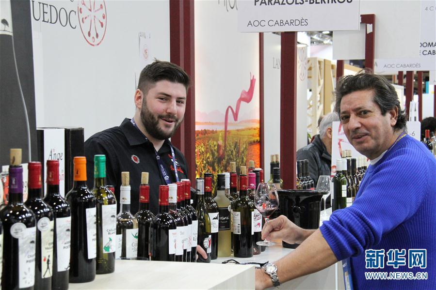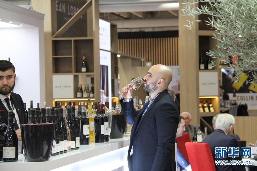 2月12日,在法國巴黎國際葡萄酒及烈酒博覽會(huì)上,一名男子品嘗紅酒。 新華社記者 徐永春 攝