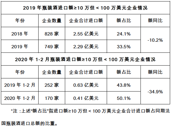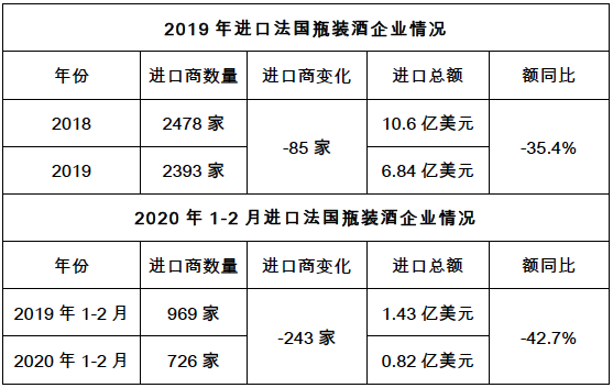 今年1-2月,市場低迷與疫情影響的雙重沖擊下,更是出現了無企業進口法國瓶裝酒超過500萬美元的慘淡開局。