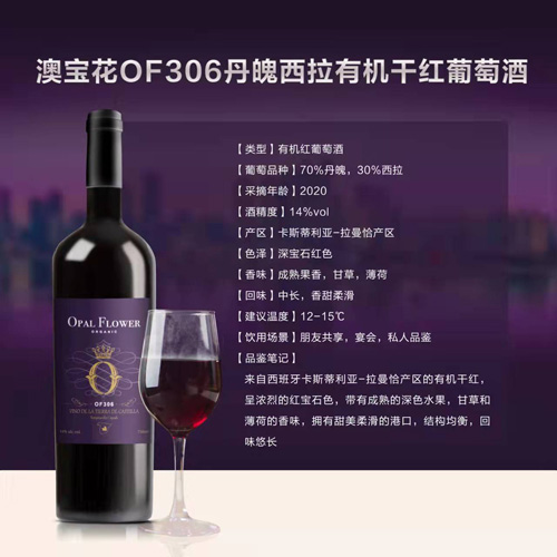 名稱:澳寶花OF306丹魄西拉有機干紅葡萄酒