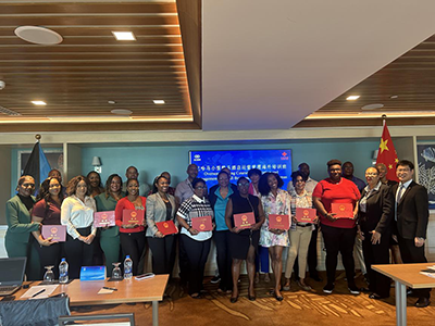 2024年9月25日,巴哈馬小型精品酒店運(yùn)營(yíng)管理海外班結(jié)業(yè)儀式在拿騷舉行。使館經(jīng)商工作負(fù)責(zé)人彭晶、巴哈馬旅游、投資和航空部官員、參訓(xùn)學(xué)員等參加。